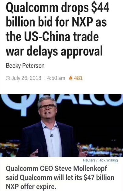高通宣布放弃440亿美元对恩智浦的收购